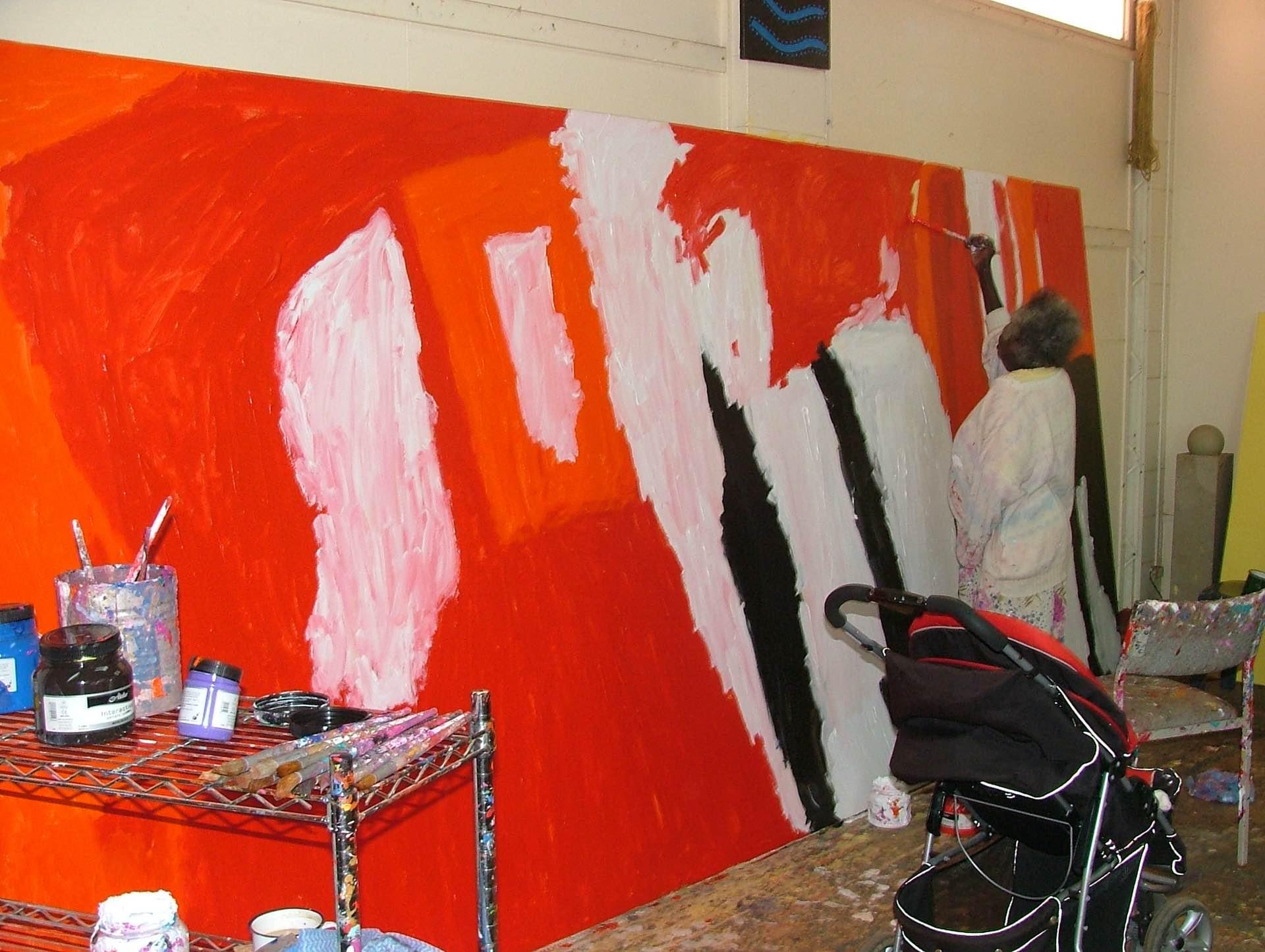 Sally Gabori painting Nyinyilki. Art and Craft Centre, Mornington Island, 2009. Photo © Inge Cooper