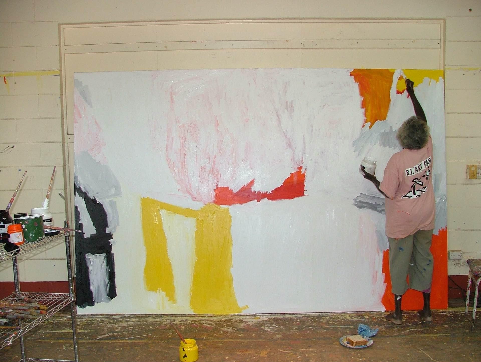 Sally Gabori painting Dibirdibi Country. Art & Craft Center, Mornington Island, 2008. Photo © Inge Cooper